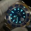 Bezel:Gold Plated Blue Uni-directional Diver Ceramic Bezel, Anti-Clockwise (With Superlume on Bezel Dot)